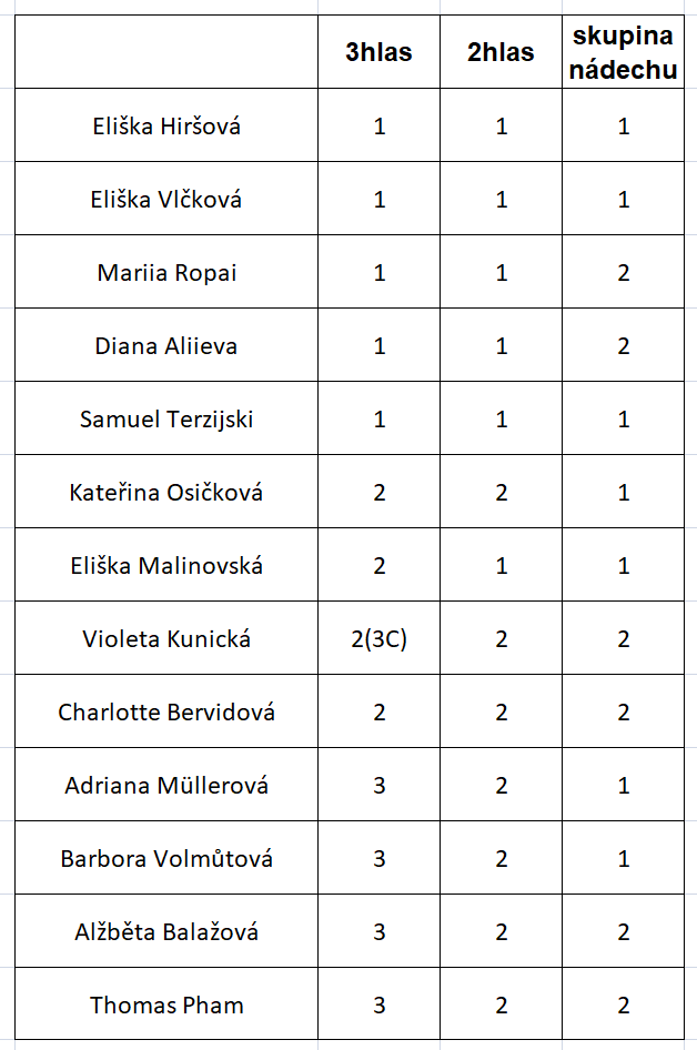 Sbor zkouší každé úterý od 16:45 do 18:15h ve tř. 301 ve 2. patře ZUŠ Mar. Lázně Prosím dohlédněte na pravidelnou individuální domácí přípravu Vašich dětí. Jen tak pak budete moci být hrdí na výsledek naší společné práce.